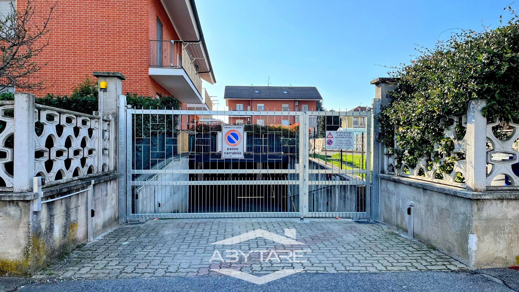 L’accesso alle autorimesse avviene tramite cancello motorizzato, che garantisce praticità e sicurezza.
