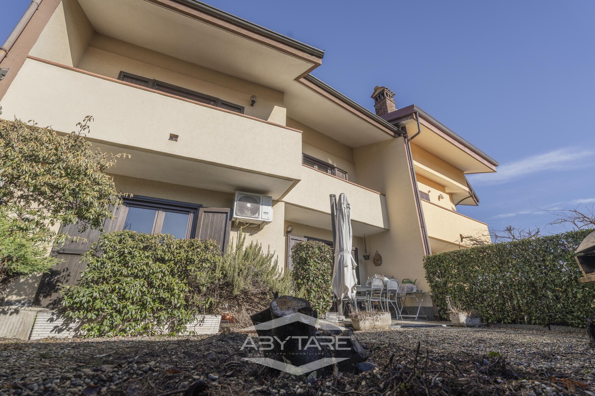 Benvenuti nella vostra nuova casa da ABYTARE ! VILLA "AUTONOMY" VISITA I NOSTRI VIRTUAL TOUR A 360 ° E VIDEO DETTAGLIATI DELL' ABITAZIONE COMODAMENTE DA CASA TUA. FRONT CANAVESE - In bellissimo contesto residenziale degli anni 90', immersa nella tranquillità del paese, proponiamo stupenda VILLA A SCHIERA disposta su 3 livelli con giardino privato, box auto doppio, 2 posti auto esterni cosi composta: PIANO INTERRATO: Tavernetta accatastata come locale di sgombero e cantina, composta da ingresso, ampia camera, disimpegno, antibagno e bagno, presenta la porta con accesso diretto al box auto. PIANO TERRA: Ingresso living su salone doppio di generose dimensioni con camino a pellet da 14 kw, cucina abitabile, grande bagno e giardino esterno di 50 mq c.a. in parte piastrellato con la zona porticato e in parte con ghiaia. Presente impianto d' aria condizionata con inverter caldo/freddo. PIANO PRIMO: Ingresso, 3 camere da letto matrimoniali, sala da bagno, 3 ampi balconi. Completa la proprietà un box auto doppio di 30 mq c.a. che permette il rimessaggio di due automobili e due posti auto esterni. L' immobile si presenta in ottimo stato interno e volendo abitabile fin da subito, la caldaia è a condensazione da poco sostituita, gli infissi esterni sono dotati di triplo vetro in pvc con apertura vasistas e l' ampio giardino permette di godersi a pieno lo spazio esterno con pranzi/cene in compagnia di amici o rilassarsi in totale privacy ! Luminosa e arieggiata grazie all' ottima esposizione ed alla presenza di numerose finestre e balconi, adatta anche a famiglie numerose. Non perdere questa occasione! Contattaci al 348/4804345 per organizzare una visita personale. Offriamo valutazioni gratuite e senza impegno per la vendita di immobili, e consulenze di mutuo gratuite con tassi agevolati. Tutti i dati sopra riportati non costituiscono elementi né presupposti contrattuali.